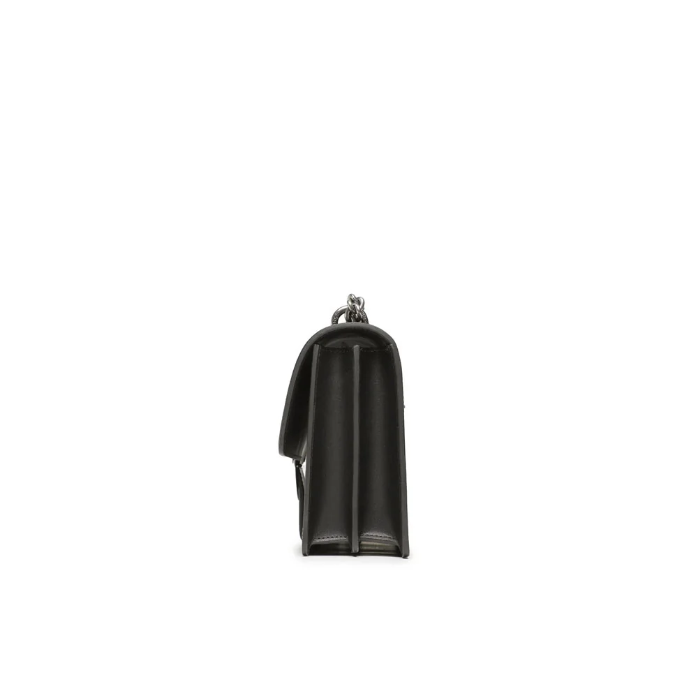 • tracolla removibile che combina la classica catena rotonda al pratico spallaccio in pelle regolabile
